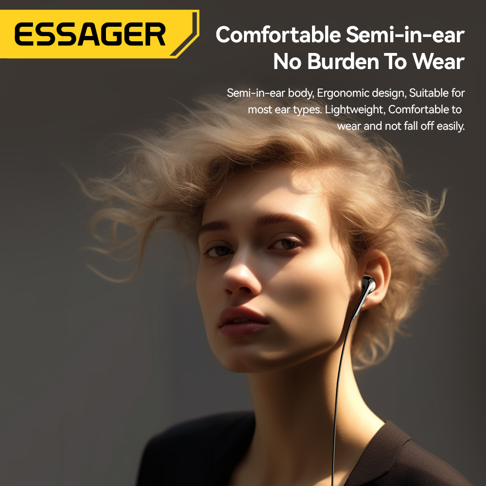 ESSAGER S320 Stereo Bass Headphone In-Ear 3.5MM Wired Earphones HIFI Earpiece with MIC for Xiaomi Samsung Vivo Oppo Huawei Phones