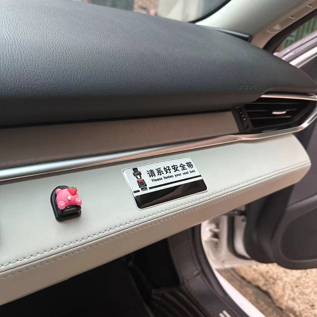 Good quality sticker. Material is thick and glossy type. Works better if used on flat surface. It clearly displays the message to remind the passengers behind to belt up.