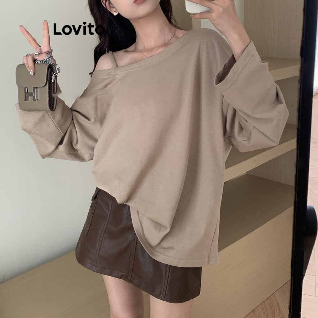 Material Quality:smooth Colour:light brown Love the off shoulder top and the brown shade. It is quite wide n loose but after wearing it , it looks good on my body . Comfy . Fold up the sleeves will look better . Purposely buy the bottom shorts to go with it as the seller did the demonstration on live show . She looks great with this set as per my request. Therefore, I just add in d cart at once! Thanks for bringing good design n value for money indeed .