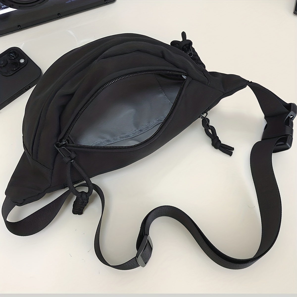 The quality of the men's shoulder/chest bag is better than expected. The length of the shoulder strap is just nice when fully extended.