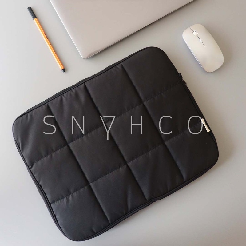 Material Quality:sturdy Colour:true to what was bought very sturdy material! thought it was going to be a bit flimsy cos its a puffer but wow im impressed! comes with two pockets in the inner lining of the sleeve. fits my 13.5 inch laptpp! overall 10/10 so cute ?