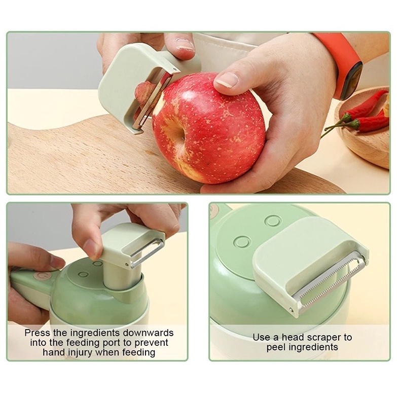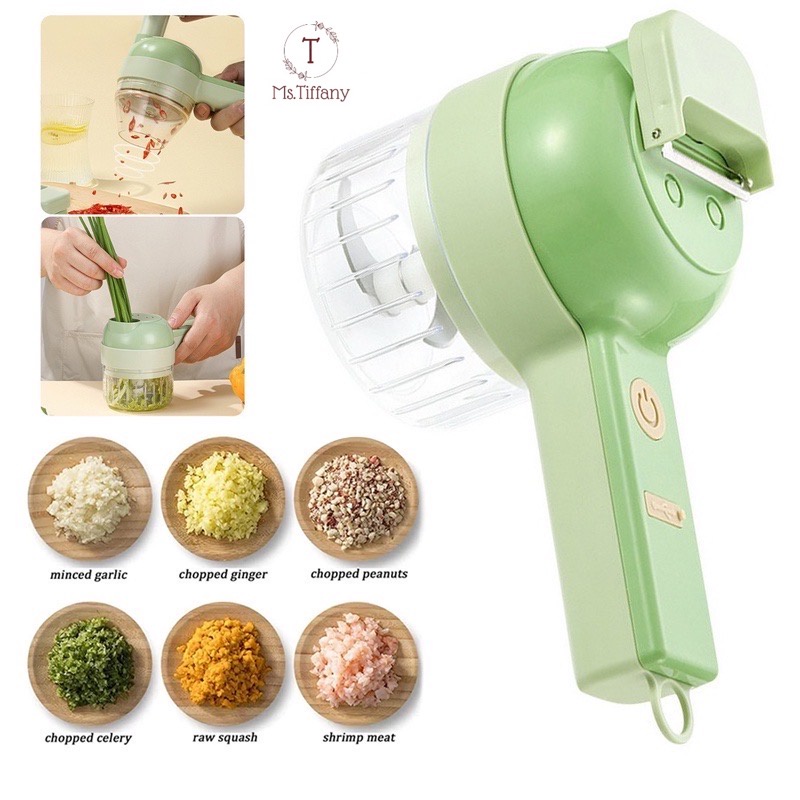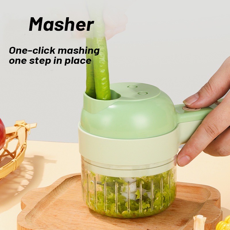 [SG Stock] 4 IN 1 Portable Electric Slicer /Masher /Garlic Chopper With Peel Function