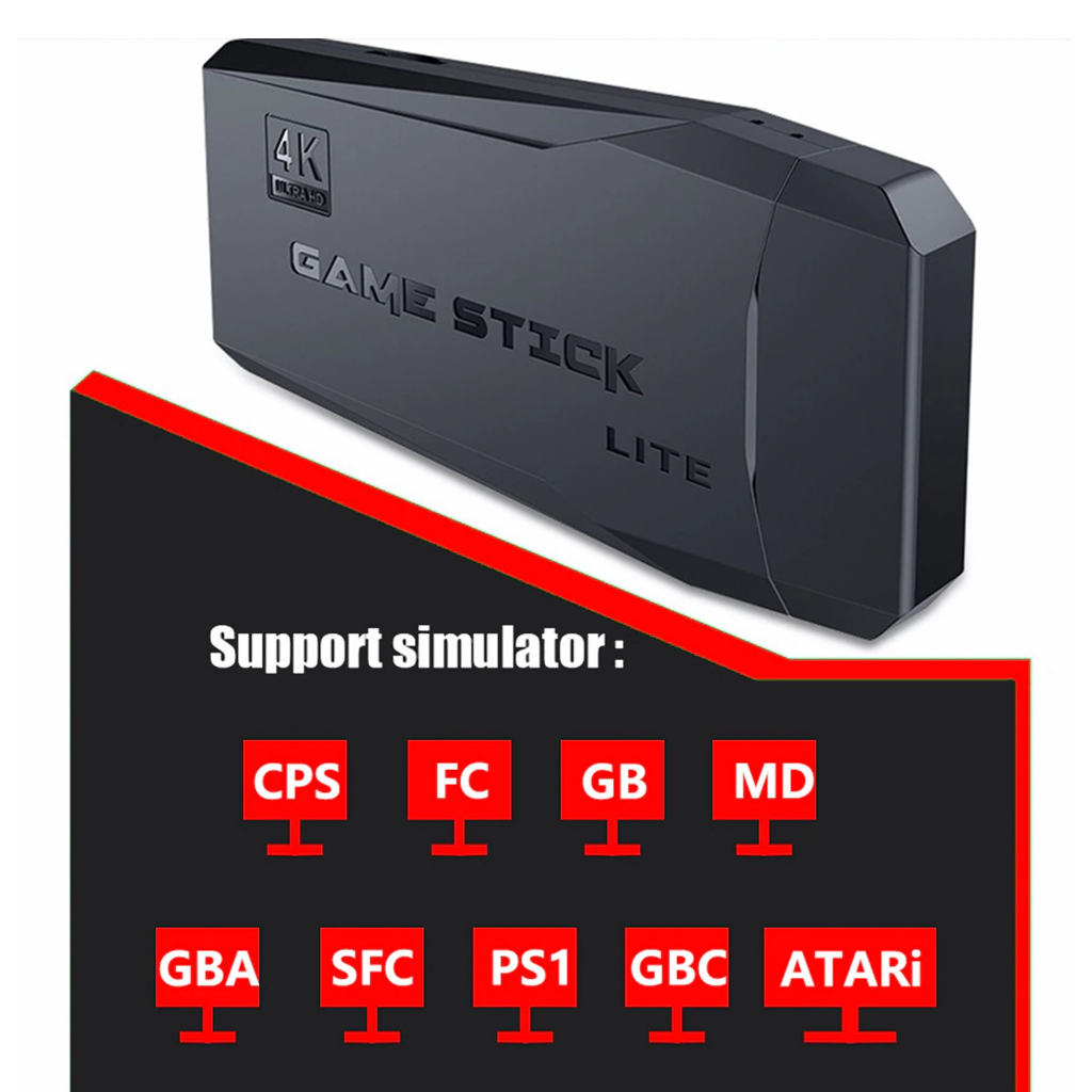 [SG Stock] 4K HD Video Game Console 64G Built-in 10000 +Games Retro handheld Game Stick Wireless Controller Supports MAME/FC/GB/MD/SFC/PS1 Game Kids Gift