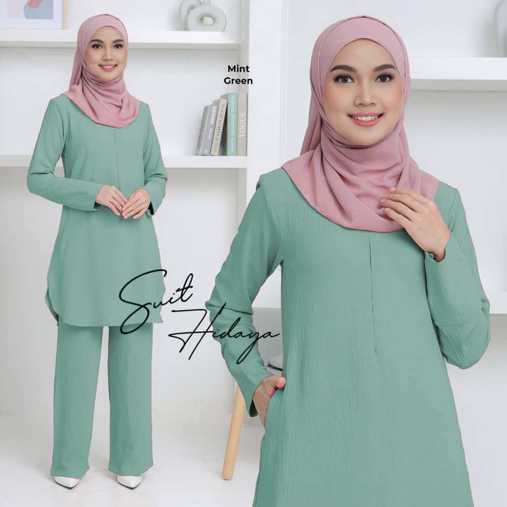Colour:as seen Material Quality:soft Very satisfied with this suit. I think the cutting, it make me looks slimmer. Colour is nice. Goes well with my hijab.